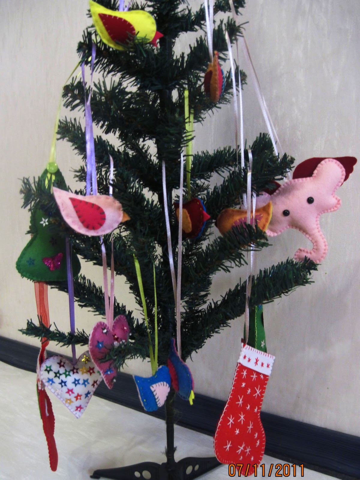 Сшились у меня мелочушки для магазина. Не придумала ничего лучшего, чем поставить старенькую елочку и нарядить ее ))))
